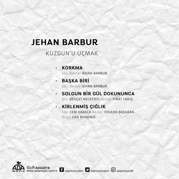 2017’de 5. Solo albümü “Evim Neresi” ni yayımlayan Jehan Barbur bir yıl aranın ardından 4. Şarkıdan oluşan “Kuzgun’u Uçmak” adını verdiği maxi single’ını sevenleriyle paylaşıyor.